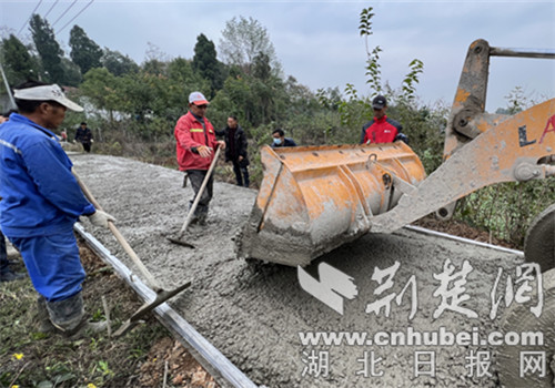 荆楚网(湖北日报网)讯(通讯员 彭迎兵、刘娇)11月19日,荆门市东宝区子陵铺镇七桥村2组村民忙碌着为村里修路。正在现场施工的村民杜兴华介绍,该村2组入户道路3300米长,2.5米宽,11月2日开始修建。村民们也愈加期待:“等路修好了,我们进出家门也能干干净净了。”