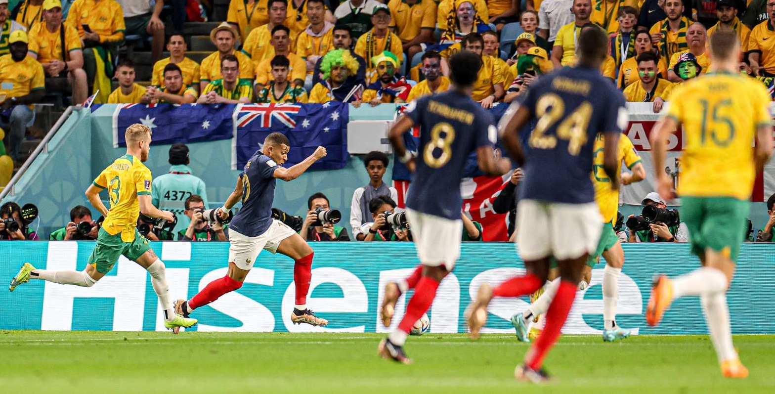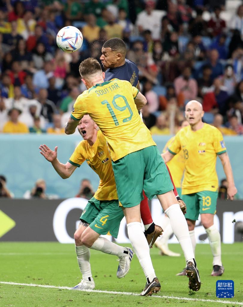 上半场伤停补时阶段,杰克逊·欧文的头球打在了立柱上,澳大利亚队错失扳平比分的良机。易边再战,法国队继续占据场上主动。比赛接近70分钟时,登贝莱挑传至中路,姆巴佩头球破门。此后,姆巴佩助攻吉鲁头球破门。后者完成本场比赛的梅开二度,国家队生涯进球数来到第51球,追平名宿亨利并列法国队史射手王。