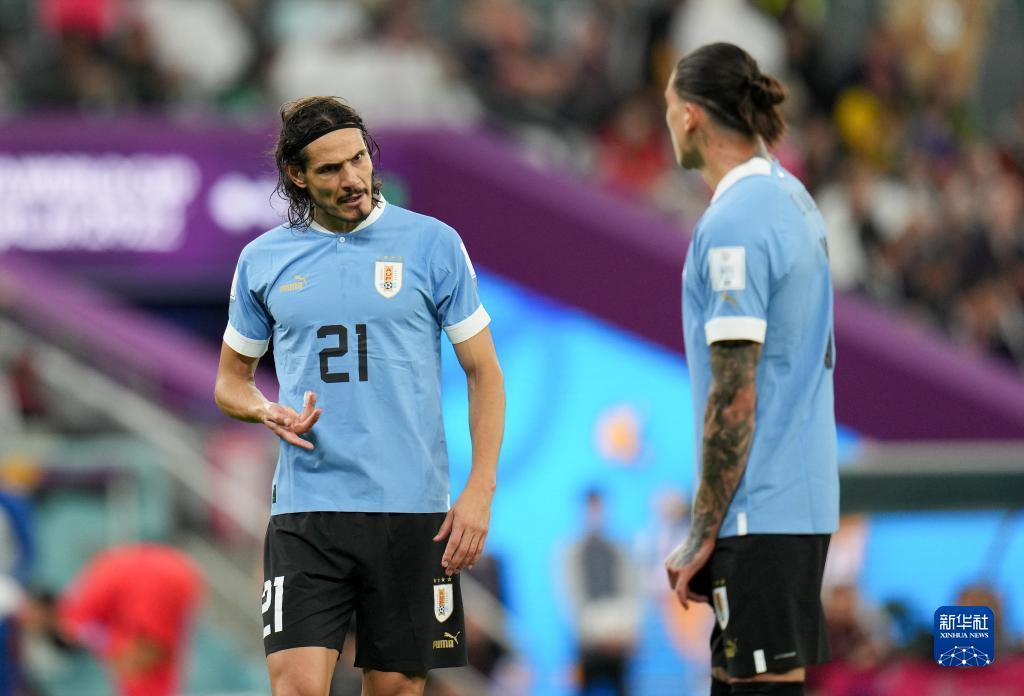 11月24日,乌拉圭队球员埃丁森·卡瓦尼(左)在比赛中。新华社记者 孟鼎博 摄