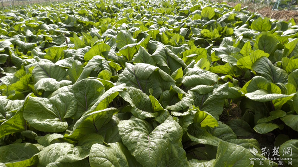 来到蔬菜种植大户杨威的涢康果蔬专业合作社,只见70个标准化的蔬菜大棚整齐排列,花菜,包菜,莴笋,萝卜,小白菜,菠菜等经济作物健康成长。