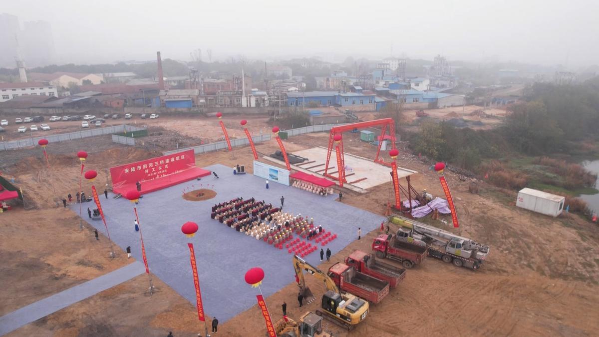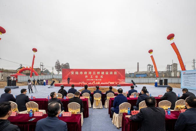 湖北日报客户端讯 (通讯员 陈艳丽 彭应杰)三桥横贯涢水岸,城市更新谱新篇。11月26日,安陆市府河三桥建设项目举行开工仪式。