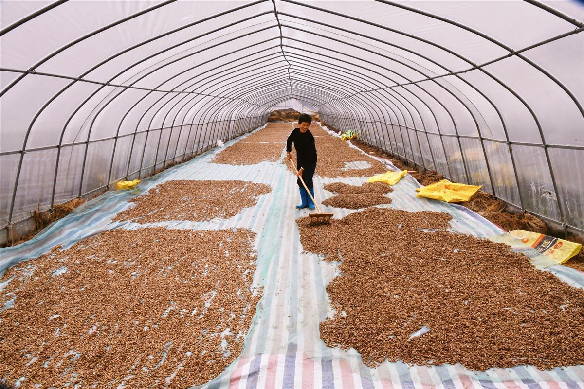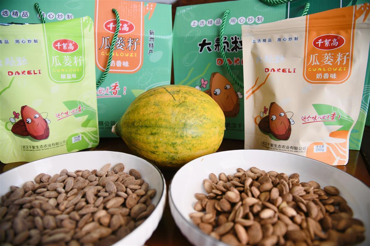 精心栽培的瓜蒌结出了“致富果”,武汉宝欣禾壮种植专业合作社负责人高宝玉看在眼里乐在心里。今年,为推进瓜蒌全产业链深加工发展,合作社修建了2000多平方米的加工厂房,分为分拣区、烘干房、清洗车间、炒制车间、打包车间、仓库六大区域。跟随着高宝玉的脚步,记者进入厂房看到,一颗刚栽下的瓜蒌进入分拣区,工人们将瓜蒌分离成瓜蒌皮和生瓜蒌子,瓜蒌皮进入烘干房,烘干好的瓜蒌皮装袋入库;生瓜蒌子则进入清洗车间清洗,清洗好后整齐堆放在嗮厂晒干,晒干后的生瓜蒌子进入炒制车间,炒制好后进行统一打包。同时,合作社还向安徽等地直接销售生瓜蒌籽,近期生产的2万多斤瓜籽已全部装车运往目的地,可带来50万元的收入。