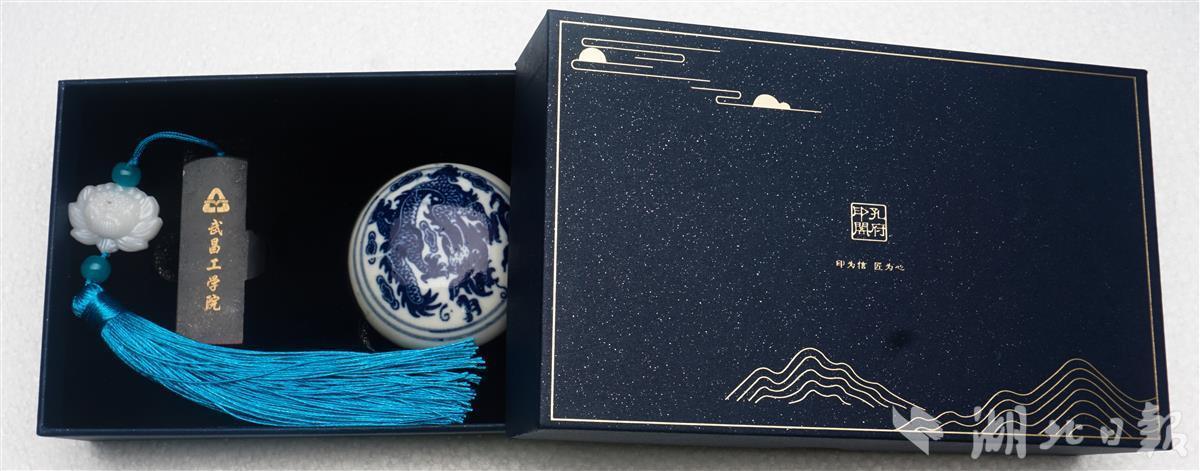 “既然是做学校的文创产品,为何不去寻找我们的身边之美呢?”展品中一套名为《印在心中》的印章也十分抢眼。印章底部雕刻有该校永泽楼、白沙园、图书馆、篮球场等一系列标志性建筑,作品雅致内敛,别具一格。设计者杜富城称,印章取法自故宫标志性建筑盖章打卡的一个形式,他在制作过程中,设计了十几次不同的风格,打破常规的设定,力求用最完美的方式演绎作品。“在制作过程中,我想了很多创意,最终把主题元素定为校园之美。”
