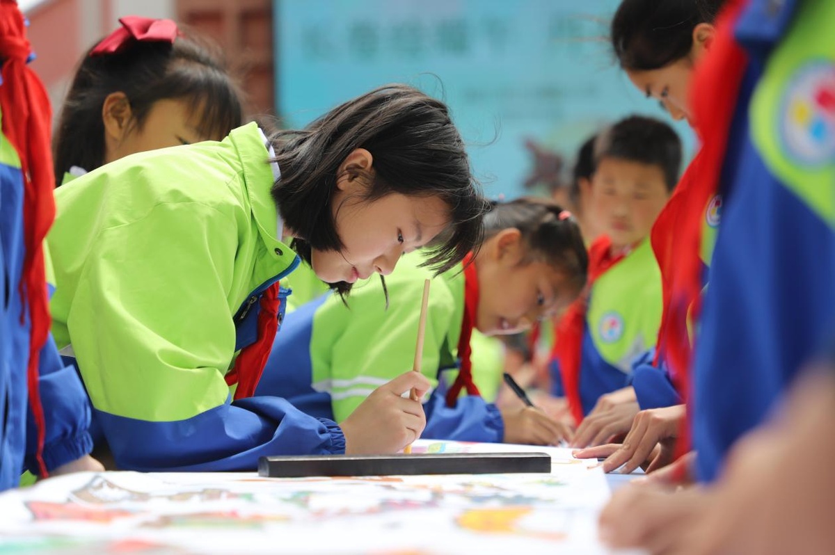 图:2022年5月10日公园路小学开展“长卷绘端午 丹心颂屈原”主题教育活动。82名学生经过三个多小时的创作,一幅沟通古今、承传端午文化、洋溢爱国情怀的三十米画卷生动地展现在人们面前。