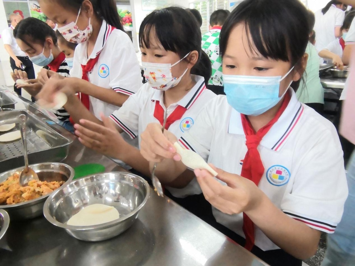 图:2022年5月6日公园路小学开展四年级“包饺子”——“劳动最光荣 劳动最美丽”主题活动,亲口品尝自己包的饺子,真正体会劳动的快乐。
