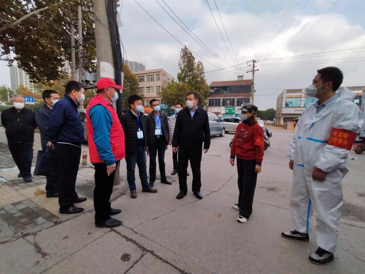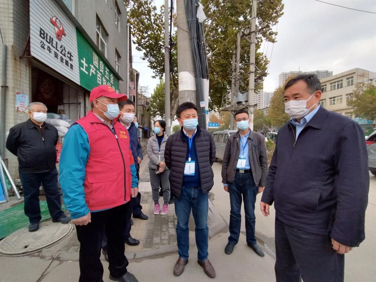 在党员突击队工作现场,焦泰文要求他们在“社区吹哨、党员报到”活动中,提高政治站位,强化党员意识,亮明党员身份,充分发挥先锋模范作用,精准高效为民服务,确保社区防控阵地固若金汤,确保人民生命安全。