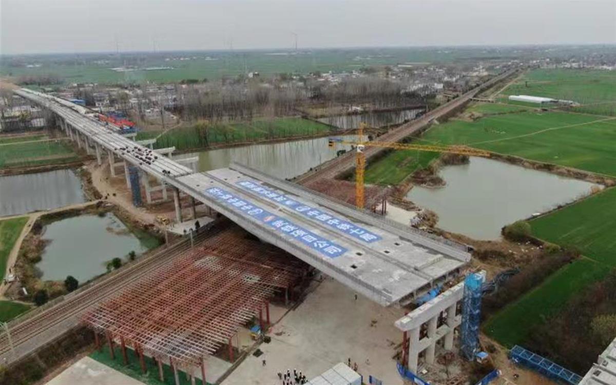 11月30日,由中国铁路武汉局集团公司武汉武铁工程项目管理有限公司(简称武铁项目公司)代建、中铁七局承建的濮新高速宁沈段上跨漯(河)阜(阳)铁路立交桥,在90分钟的天窗点内旋转67.5度,成功与两端高速公路精准对位。