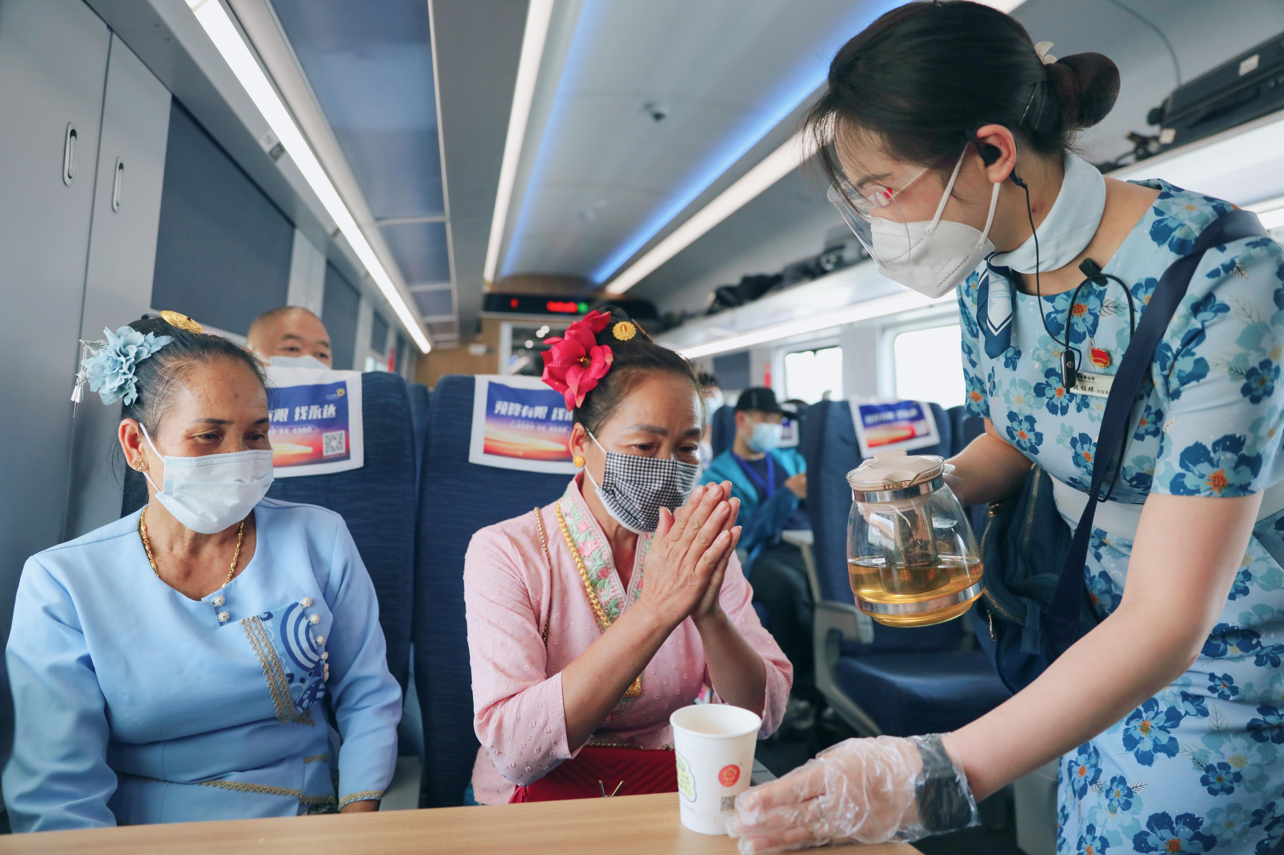 “复兴号”“澜沧号”动车组运行安全、绿色、快捷、舒适,大幅缩短了沿线城市间时空距离,受到两国民众青睐,成为出行首选。