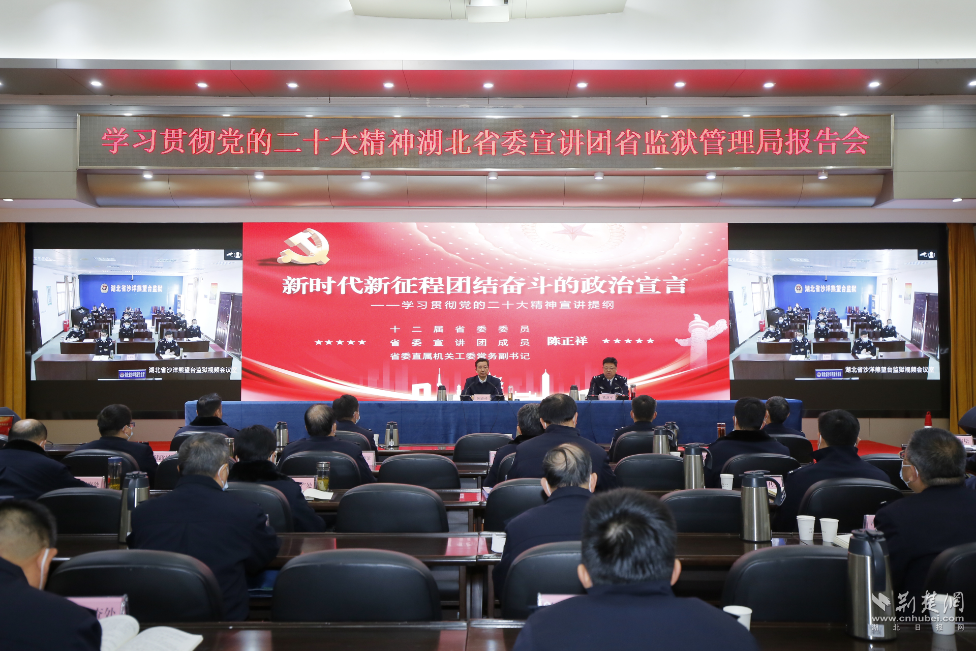 荆楚网(湖北日报网)讯 (记者肖慧婷 通讯员张瑞卿)12月5日,学习贯彻党的二十大精神湖北省委宣讲团走进省监狱管理局。省委宣讲团成员、省委直属机关工委常务副书记陈正祥作宣讲报告。省监狱管理局党委书记、局长熊亚平主持报告会。