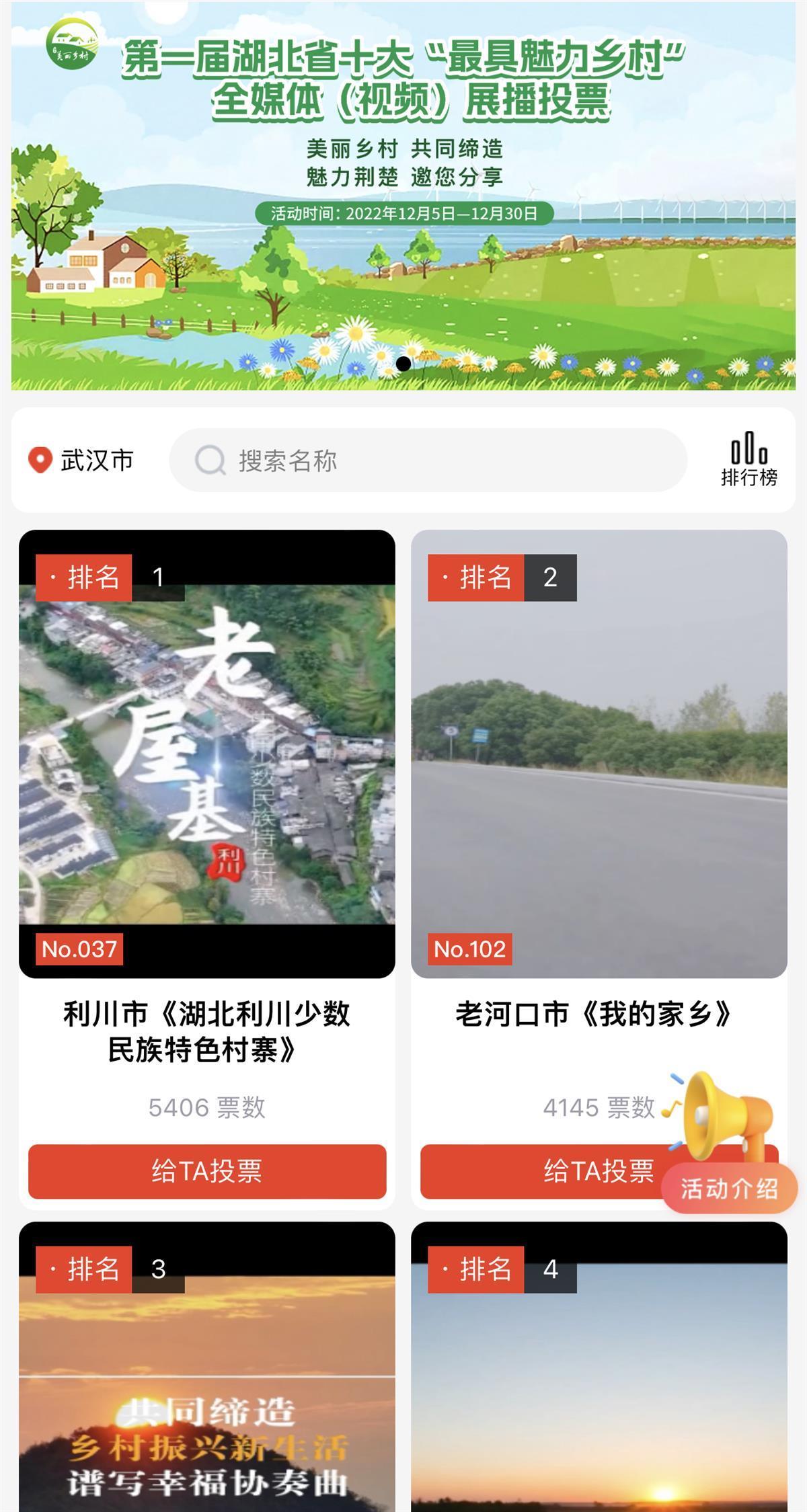 据主办方介绍,自展播推选活动开展以来,吸引了广泛基层融媒体机构积极参与。省、市县近六十家媒体组织和新文艺群体报送作品达到300多部,其中县级融媒体参与单位占50%。经过专家组初评,102部(集)作品进入网络投票阶段。展播投票时间将于十二月底结束,届时主办方将组织电视艺术专家、驻村第一书记、致富带头人等各方面代表组成的评委会,最终评出湖北省十大“最具魅力乡村”、湖北省“最具魅力乡村”全媒体(视频)十佳制作单位(或个人)及优秀制作单位(或个人)等奖项。“这是全省十年来脱贫攻坚、乡村振兴等‘三农’工作成就的影像化呈现,参与作品制作精良,表现出较高的审美取向,生动展现新时代荆楚大地新农业、新农村、新农人的新面貌,表现出党的十八大以来积极昂扬、蒸蒸日上的荆楚乡村发展变化。”