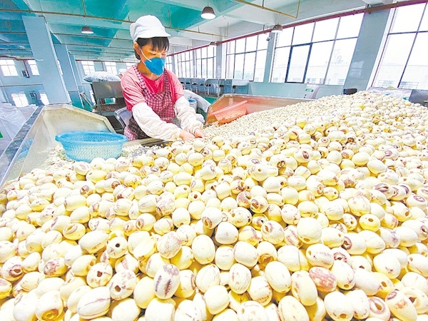 在精深加工方面,充分发挥科教智库作用,与链条上企业签订多项技术合作、研发协议,推进产学研融合,补齐加工短板。湖北长久菌业有限公司与上海农科院达成菌种繁育合作协议。湖北华贵食品有限公司与华中农业大学、武昌工学院等院校合作,开展《藕带专用新品种“华贵1号”选育及栽培要点》研究,该品种藕带亩产可达1200斤以上,较传统藕带产量(亩产300斤)大幅提高。