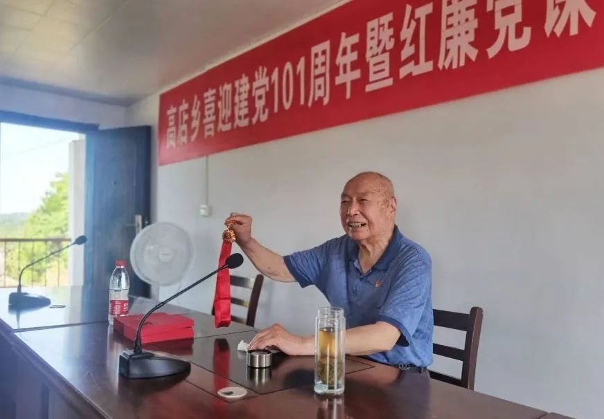 2021年党史学习教育中,88岁高龄的黄世鹏以红色故事“五老”宣讲员身份,为县委班子作了题为《初心如磐》的党史学习教育辅导报告。