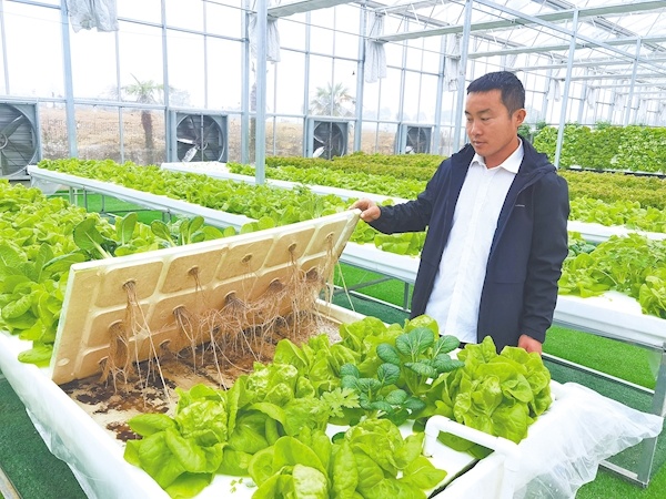屈家岭国家级研学基地金色农谷内,工作人员介绍蔬菜无土栽培技术。