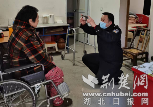 荆楚网(湖北日报网)讯(通讯员冯金芳)12月14日,荆门市东宝区龙泉街道党群服务中心公安窗口接到一名男子求助,该男子称其65岁的母亲三年前中风后长期卧病在床,生活无法自理,去年住院期间身份证不慎遗失,但苦于出行不便,一直没有回钟祥柴湖老家补办居民身份证。户籍民警经请示上级业务部门同意,打开了办证绿色通道,当即与王先生约定了上门拍照时间。