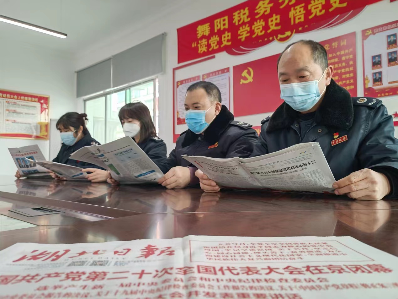 荆楚网(湖北日报)讯(通讯员 杨海平 于艳芳)“作为税务部门的党员干部,我们要为党分忧、为国聚财、为民收税,以党的二十大精神为引领,促进税收事业高质量发展。”近日,恩施市税务局舞阳税务分局支部书记在第12期支部主题党日活动中,讲了“奋进新征程,创造新伟业”一堂党课。