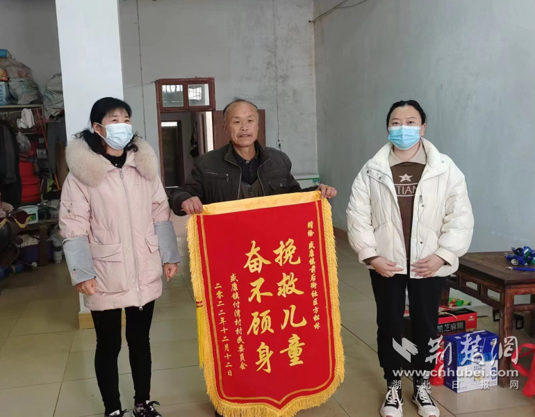 荆楚网(湖北日报网)讯(通讯员 余珊)近日,谷城县盛康镇前后街社区62岁退役军人方松林家里迎来了2位特殊的“客人”,送来一面印着“奋不顾身 挽救儿童”的锦旗,感谢他跳水勇救落水儿童的壮举。
