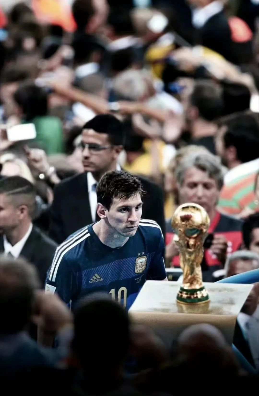 梅西曾深情凝望大力神杯
