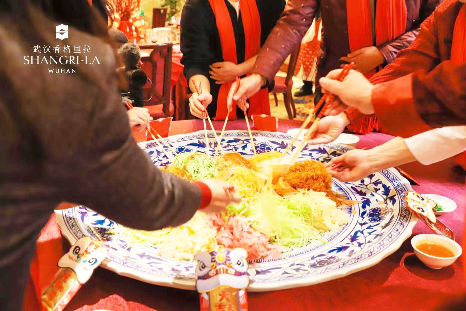 对新年的期待不仅仅在于盘中佳肴,还有独特的仪式和氛围。为了给春节增添喜庆氛围,武汉香格里拉大酒店推出“吉祥如意捞鱼生”。“捞鱼生的风俗在闽、粤和东南亚一带盛行。”武汉香格里拉大酒店餐饮总监介绍,为了让南北方的客人都能体验春节的喜庆,酒店将新鲜生鱼肉切片,再配以瓜丝、水果丝和各类蔬菜一起,平铺在大盘子上,每人手持长筷,一边喊出富贵、吉祥的口令,一边将食材捞起拌匀,以美食的名义为来年的幸福生活祈愿。