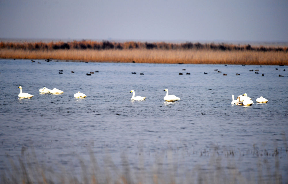 候鸟在天津北大港湿地自然保护区栖息。(新华社记者赵子硕 摄)