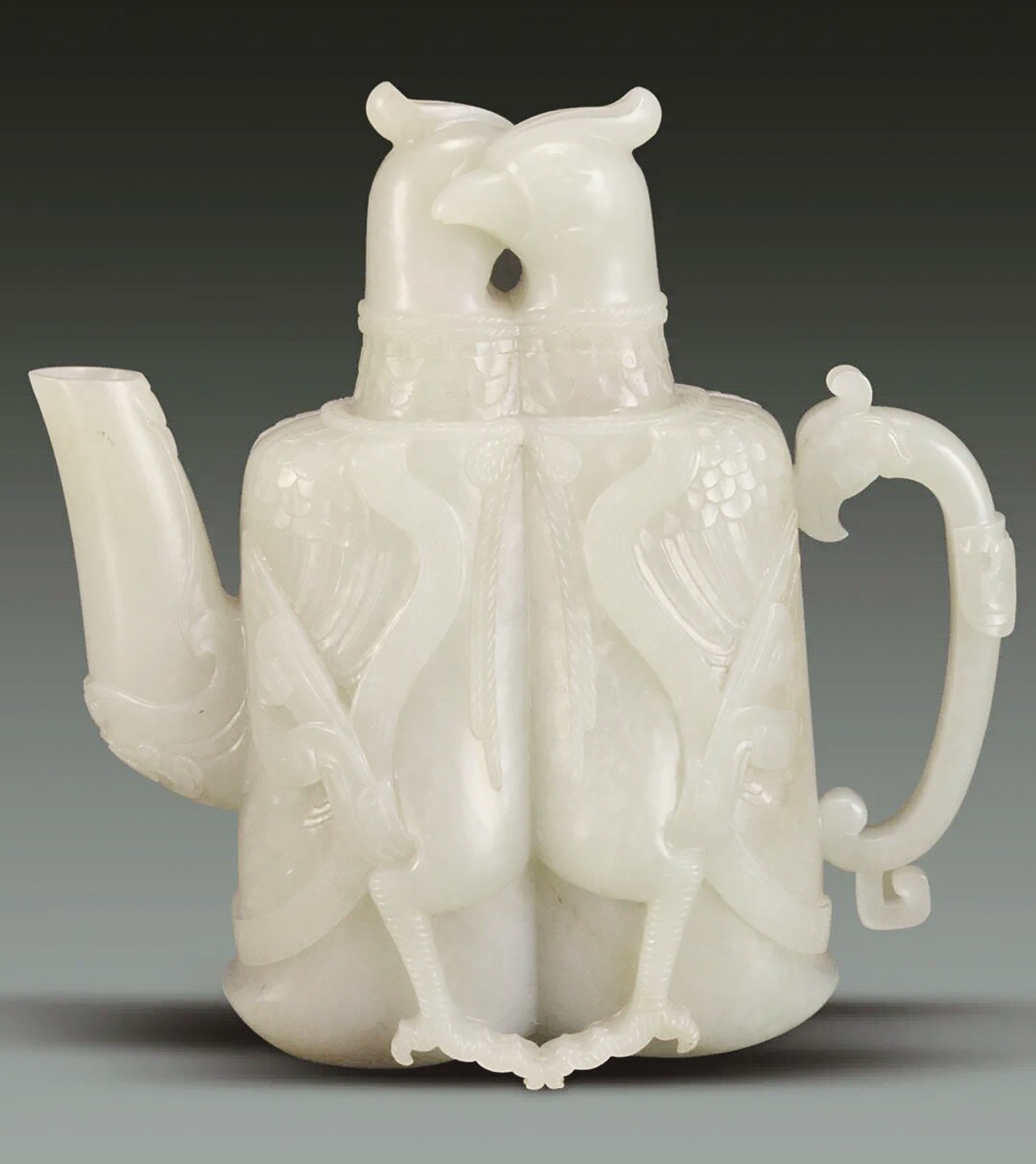 清“乾隆”款双凤交颈玉执壶