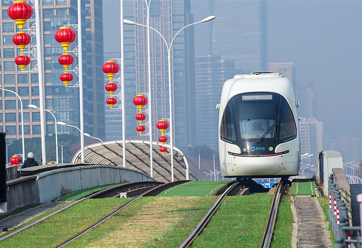 1月6日,在武汉关山大道两则开始有序地悬挂灯笼,,街道上节日气氛渐浓。近日,随着春节临近,江城大地年味渐浓。(湖北日报全媒记者朱熙勇摄)