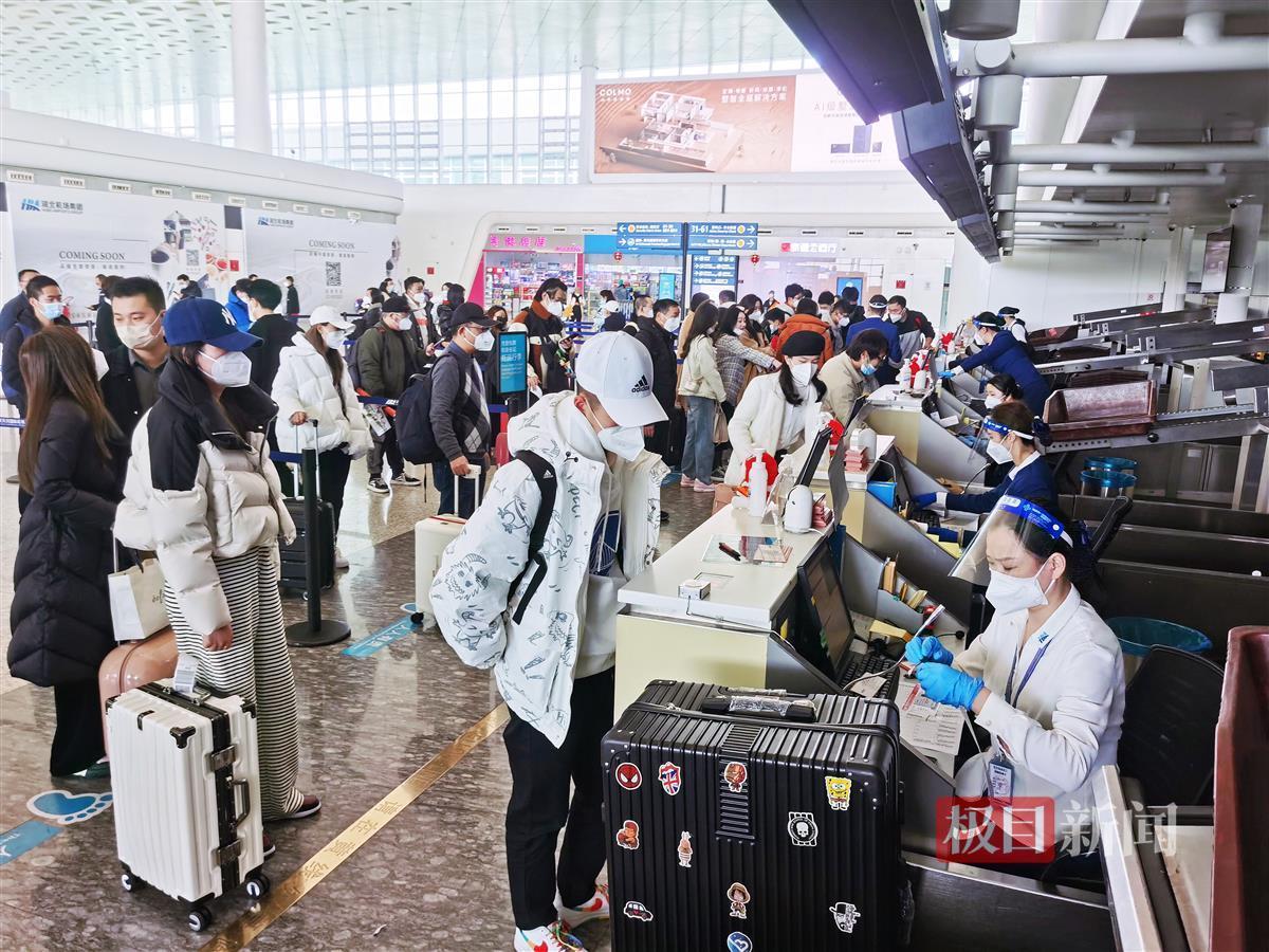 客流回升也有统计数据的佐证。春运期间,武汉天河机场预计起降航班架次2.1万架次,日均起降航班525架次,同比增长7.7%左右;预计旅客吞吐量223万人次,日均客流量5.6万人次,同比增长10.9%左右。春运首日,武汉天河机场预计起降航班架次400架次,运输旅客4.5万人次。