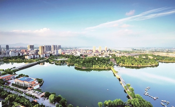 如今,俯瞰金湖生态园,小桥流水的界牌港,清澈荡漾的水上乐园,五彩缤纷的乔木林……昔日“千山照平湖,城在湖波上”美景,在金湖重现。骆久钰说,将来,生态园与上冯“九古奇村”和鹿耳山、龙角山、黄坪山森林公园连成一片,形成旅游景区,村民不出家门就能增收致富。