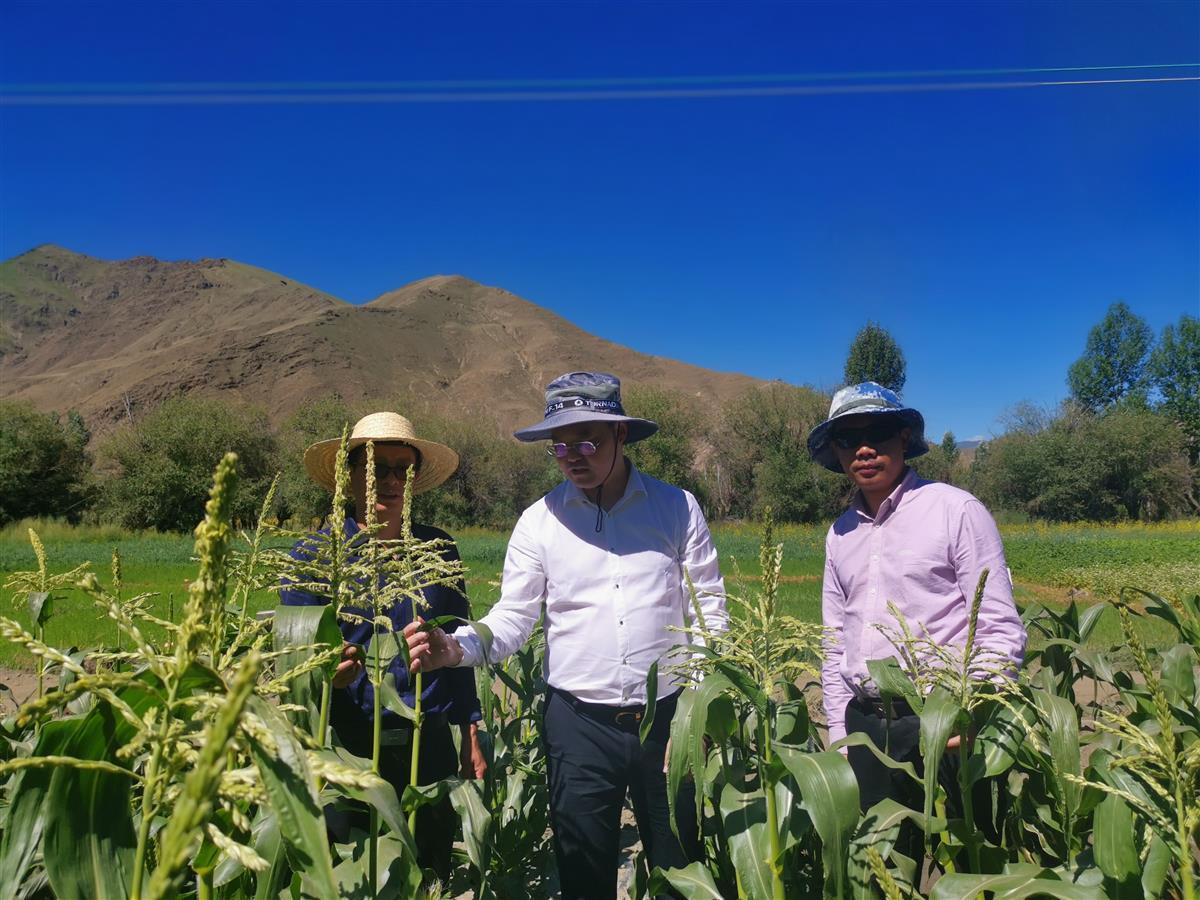 籽粒玉米科技示范再创佳绩。在去年籽粒玉米试验取得成功的基础上,联合山南市农业技术推广中心争取项目资金50万元,成功实施2022年《籽粒玉米引种示范及栽培技术研究项目》。“小组团”会同本地农技人员科学制定项目实施方案,强化分工合作,顺利完成2个籽粒玉米新品种在加查、乃东、琼结3个县区7个点的示范种植,并开展籽粒玉米新品种筛选、播期、栽培密度、生物降解膜试验及鲜食甜糯玉米品比试验5项。其中,籽粒玉米大田生产示范已经通过专家组测产验收,平均亩产达到700公斤以上;栽培试验小区产量最高达到1205.6公斤,较去年同品种增产16%,再创高产纪录。籽粒玉米推广配套栽培技术也即将完成。