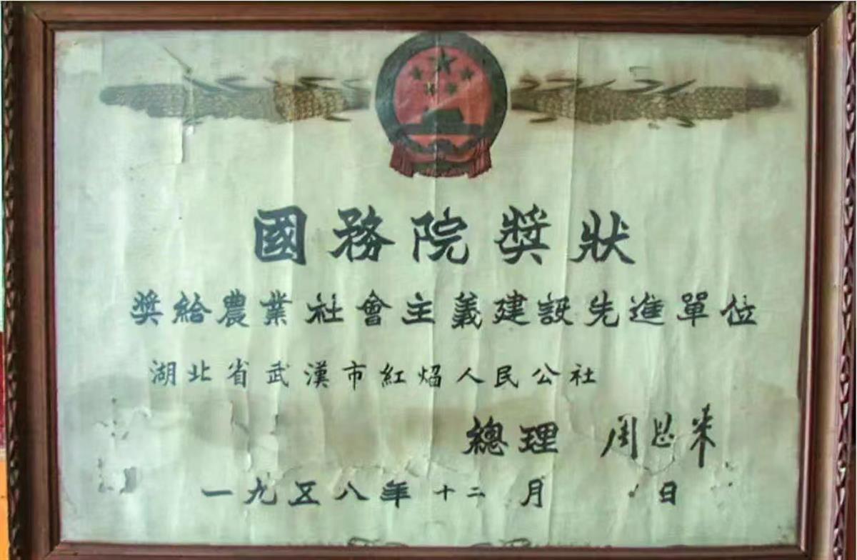 “奖给农业社会主义建设先进单位。”花山街道办事处珍藏着的由周恩来总理落款颁发的保存完好的国务院奖状,虽然已发黄,但里面的奋斗故事历久弥新。