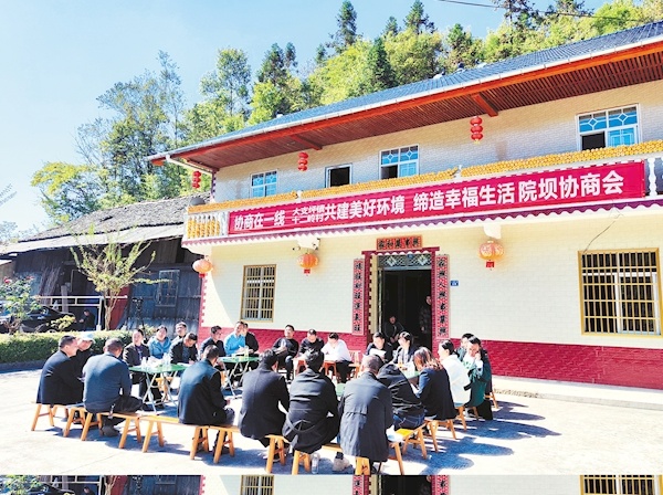 巴东县政协委员在大支坪镇十二岭村开展“共建美好环境 缔造幸福生活”的院坝协商活动。