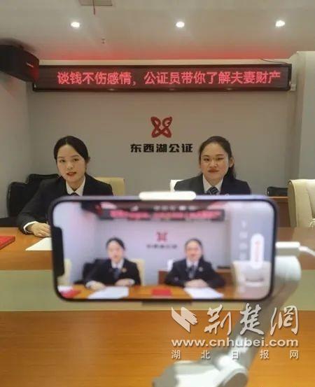 东西湖区公证处的焦点和喻靖进行本次大赛第一场直播。通讯员供图