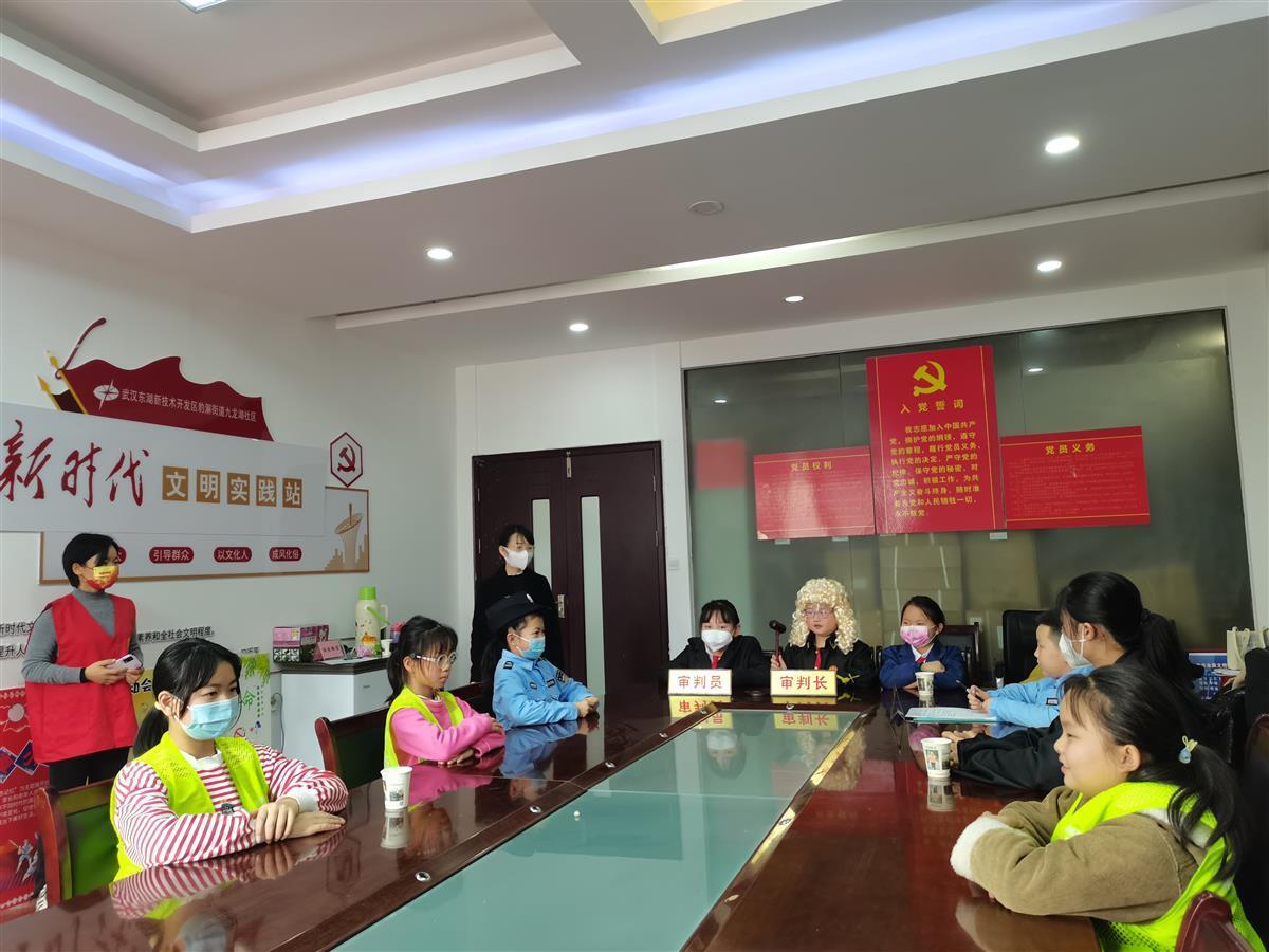 1月11日,武汉市东湖高新区豹澥街道九龙湖社区联合满天星社会服务中心,面向社区青少年开展首场“模拟法庭”普法活动。