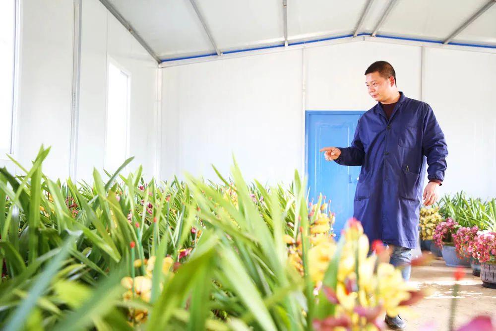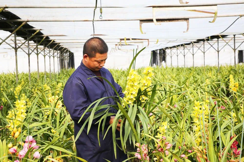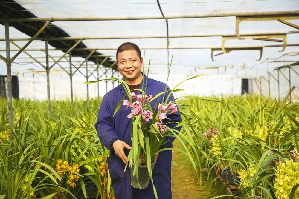 今年38岁的梅杰是骆店村人,常年在外务工,从事花卉种植行业有十余年。后来觉得家乡的创业环境更好,于是,2020年4月,他决定回乡创业种植大花蕙兰。