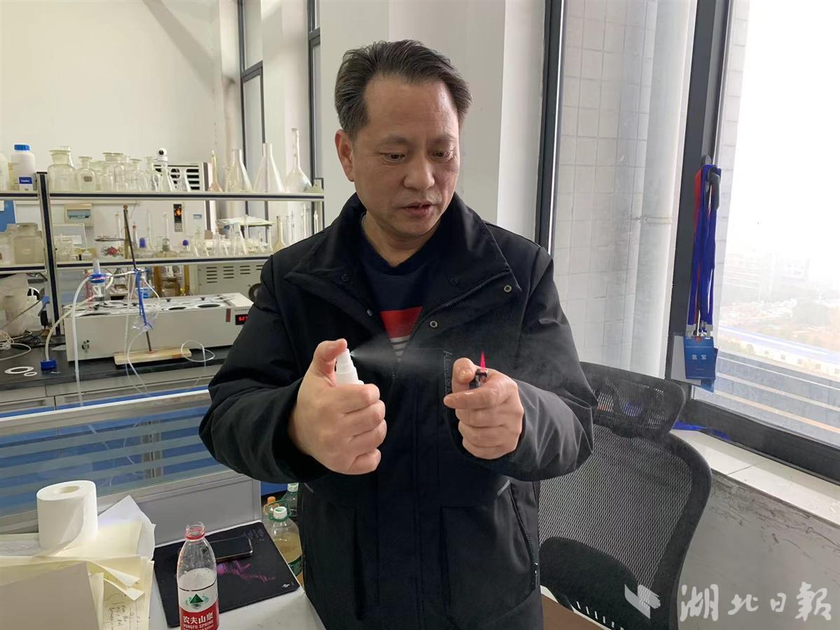 “只用喷一喷,不仅可以对物表消毒,又可对周围空气消毒。”袁军表示,这款产品还有淡淡的香味,既能消毒,味道也令人愉悦,可以带上高铁,可以喷在口罩上,在汽车、高铁、办公室、教室、礼堂、卧室等人居环境均可使用。
