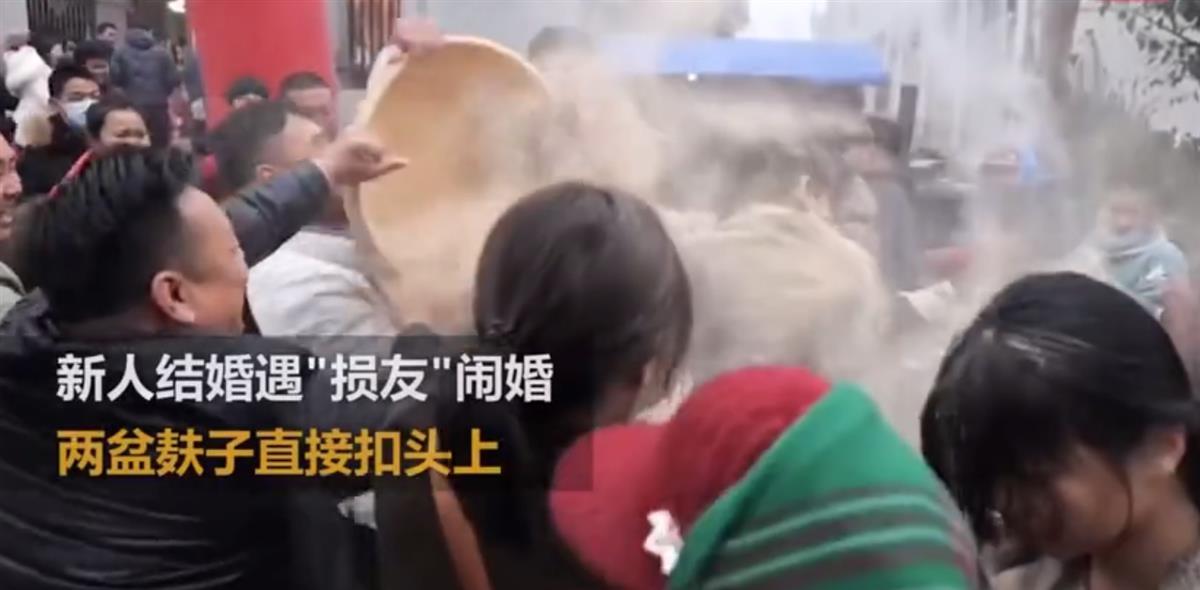 确实,这样的“婚闹”形式不仅毁掉了新郎新娘的装扮,还可能让他们吸入大颗粒物感到不适,没有多少喜庆,反而成为困扰。知情人说是当地风俗,但风俗中有精华也有糟粕,如果一种风俗令人感到不适,就说明它应该改进或废除了。