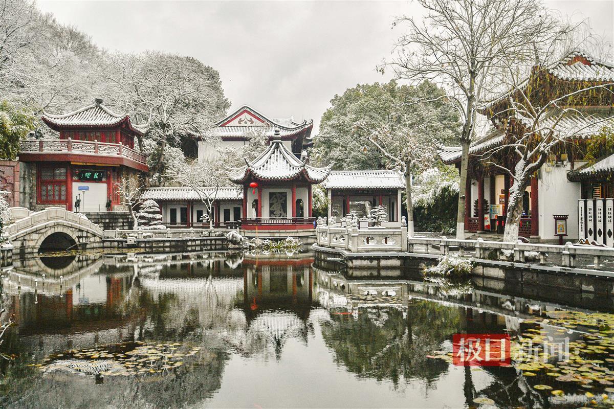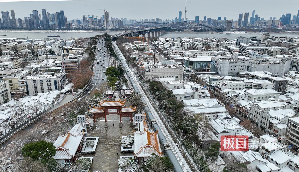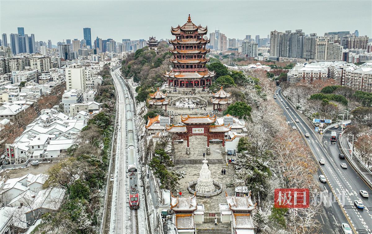 黄鹤楼在雪中巍然屹立,格外雄伟