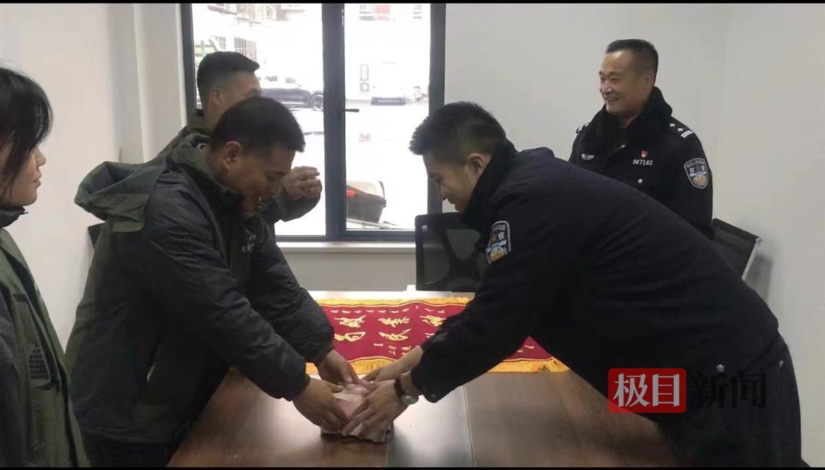 1月15日上午,民警携72900元退货款从河南郑州中牟县驱车赶回襄阳,得知消息的熊某某特意带领公司员今日早早来到派出所,特意表达对民警的感激之情。见到出差归来的民警,熊某某激动不已,坦言自己在即将绝望的时刻,派出所民警能成功将货款追回,自己父亲的治疗费用以及公司员工的工资有了着落,为其解了燃眉之急。