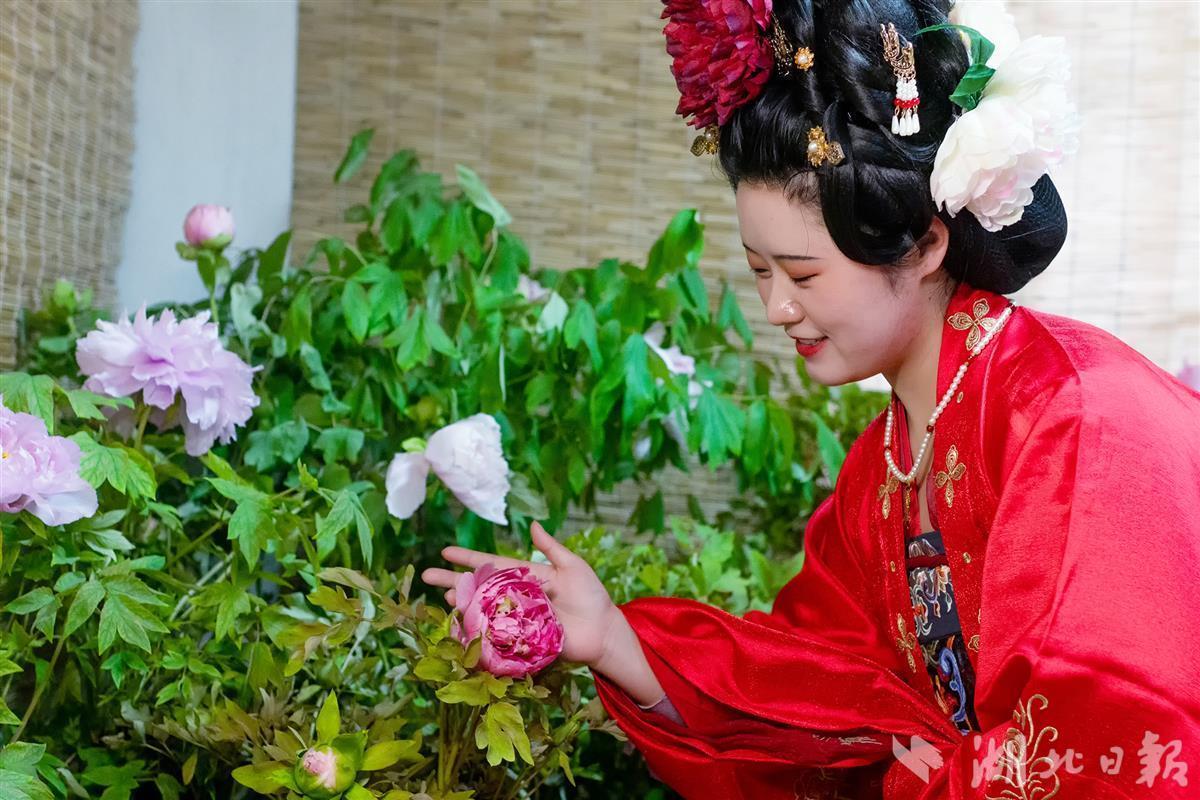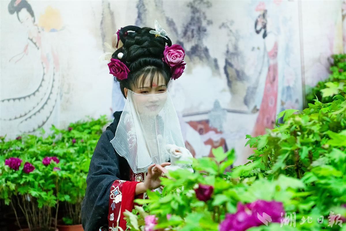 展览以“花开盛世”为主题,将中式风格融合以现代元素,打造了中国风沉浸式牡丹展览。走进展厅,只见灯笼、油纸伞、字画、博古架、屏风等传统中式元素随处可见,富丽堂皇的牡丹与之相得益彰,共同营造了锦绣繁华、花开盛世的景象,充分烘托了新春佳节的热闹氛围。游客可着汉服、旗袍漫游其中、拍照打卡,体验国风之美与牡丹的华贵之韵。