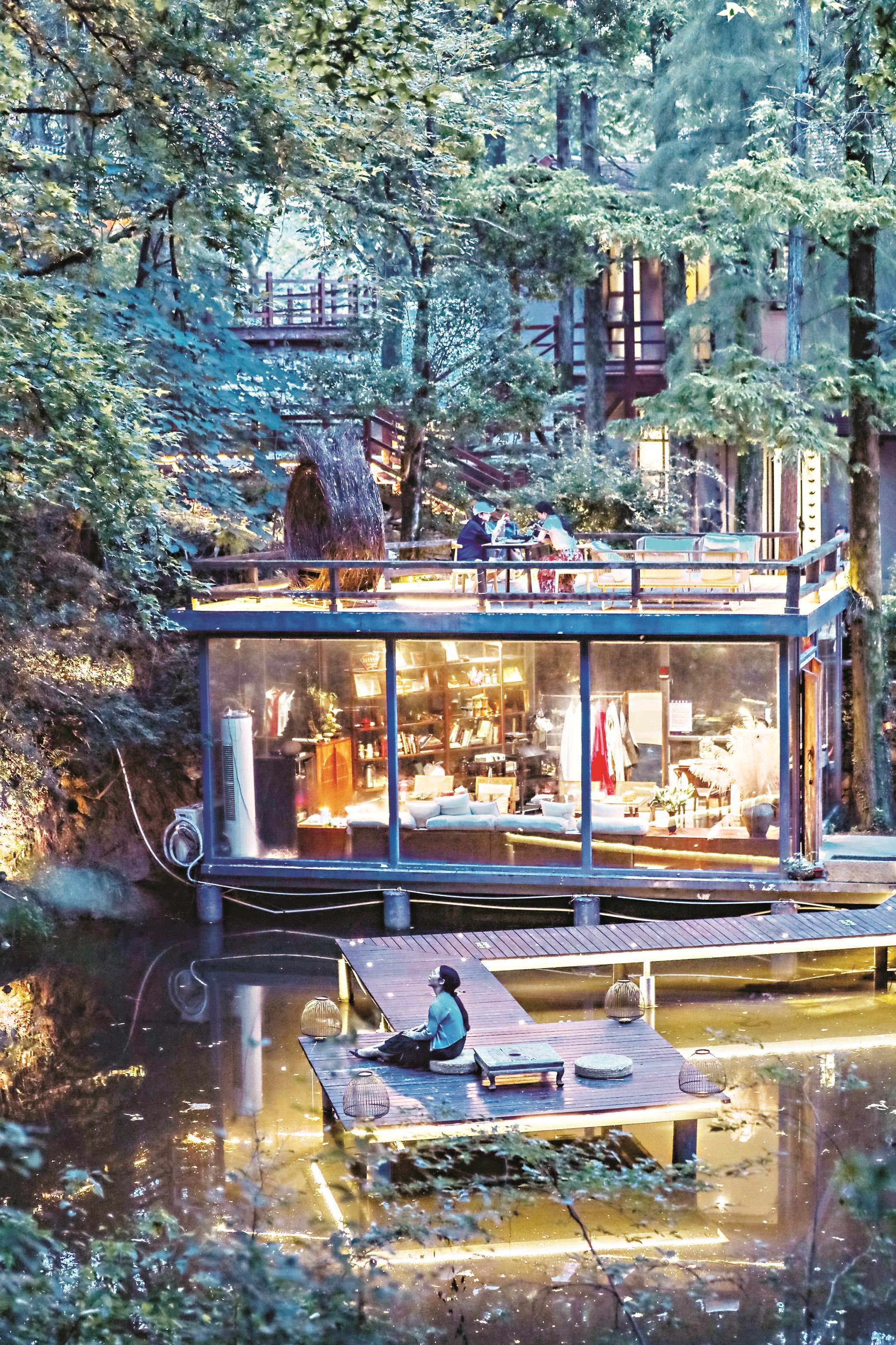 从市中心驱车一小时,就能到达木兰湖畔的青荷·小木,全湖景露台房配备高品质家居设施,极简的轻奢装修风格与天然湖景相依相融,让都市游客近郊也能“看海”。坐在樾和林泉的小院,冬日阳光从遮天蔽日的林木缝隙里照到脸上,一瞬间暖流漫溢全身。