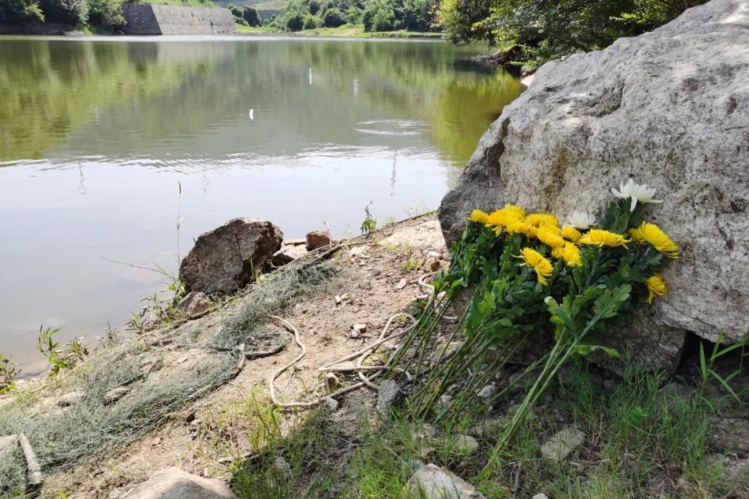 △ 附近村民自发到李林雨救人下水处悼念