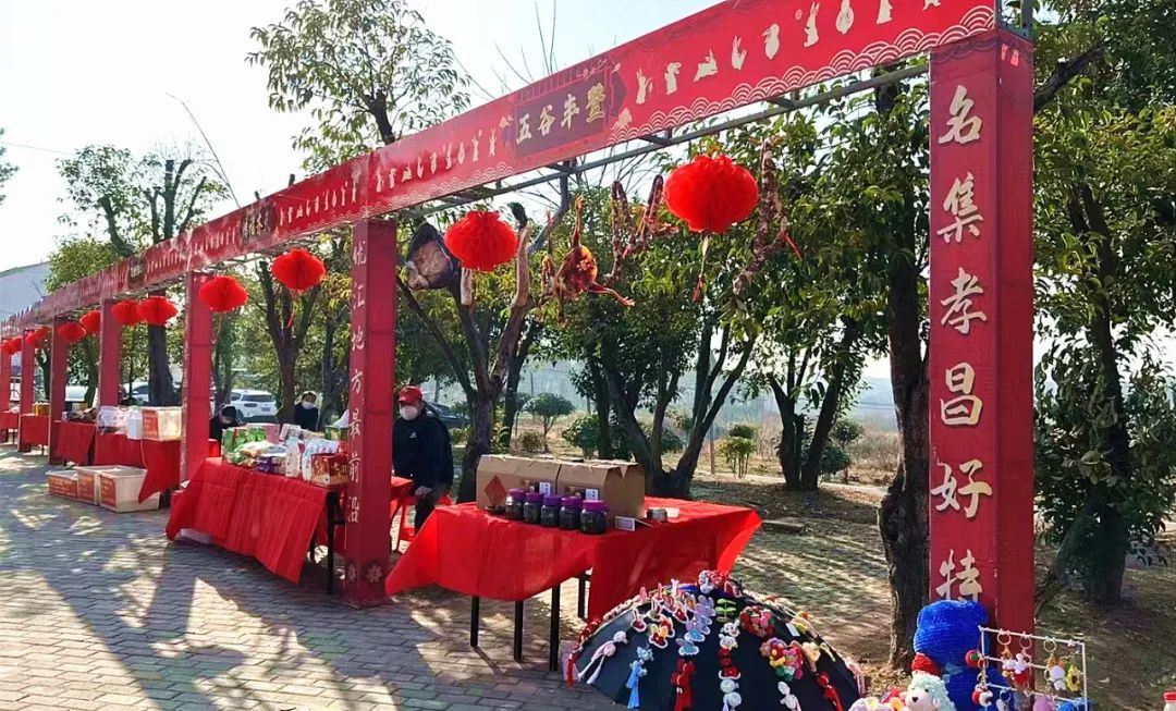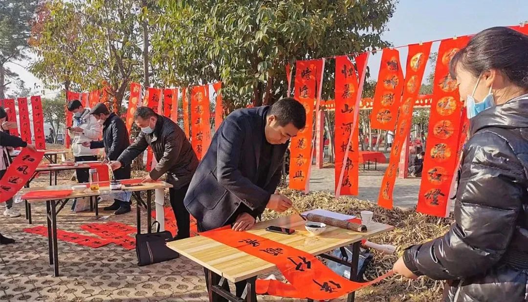 精彩节目展演的同时,人们还被现场生动丰富的“年会大集”所吸引。书画展览、送春联下乡、农副产品展销……文化气息浓厚,年味十足,使冬日的村庄一片欢腾,氤氲在过年的氛围中。