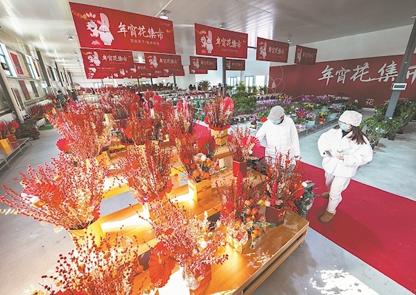 “供花”是春节的传统民俗。新年将至,汉口北鲜花小镇迎来大批购买鲜花的市民
