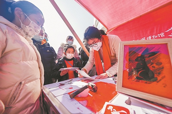 汉绣、草编工艺品、年画等一系列非遗文创作品被人们带回家装饰起来,增添了过年的文化感、仪式感、氛围感。