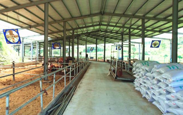 牛棚内干净整洁,丝毫闻不到刺鼻的味道。刘红方说,牛舍积极推行绿色生态养殖模式,以玉米秸秆、稻草作为肉牛食材主要原料,并创新技术,将牛的粪便制成有机肥料,循环利用,在解决污染问题的同时,还实现了利益最大化。