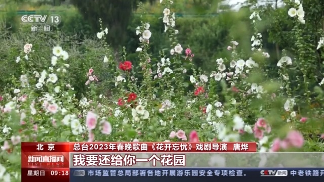 总台2023年春晚歌曲《花开忘忧》戏剧导演 唐烨:我们还找到了说有这么一对夫妇,年轻的时候女的是一个护士,然后陪着她的先生,他们喜欢到各个地方去旅游,这个先生,他对妻子说等老了以后,我要还给你一个花园,最后这个年轻的夫妇已经成老年人的时候,先生给了妻子一个花园,我们想基于这样一个挺真实的故事,我们把它演绎了。