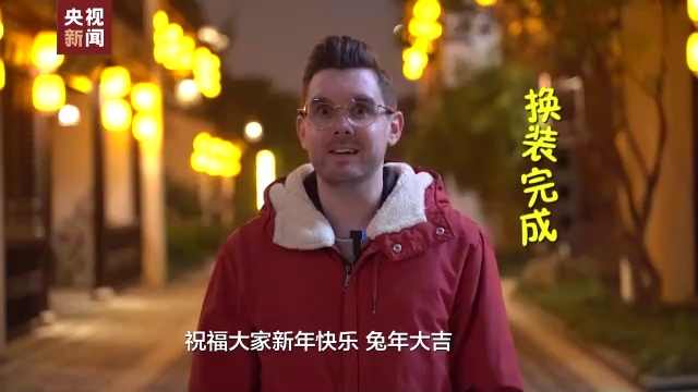 英国音乐人 肖恩:我要祝大家新年快乐,但是我要先穿一下我的中国红。祝福大家新年快乐,兔年大吉,祝大家度过精彩的一年。