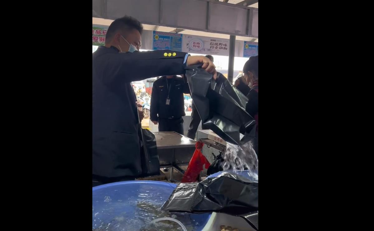1月27日,一位网友在某短视频平台上发布的这两段视频引发网友关注,该网友称这些视频是在广西北海涠洲岛的一个海鲜市场上拍摄到的。