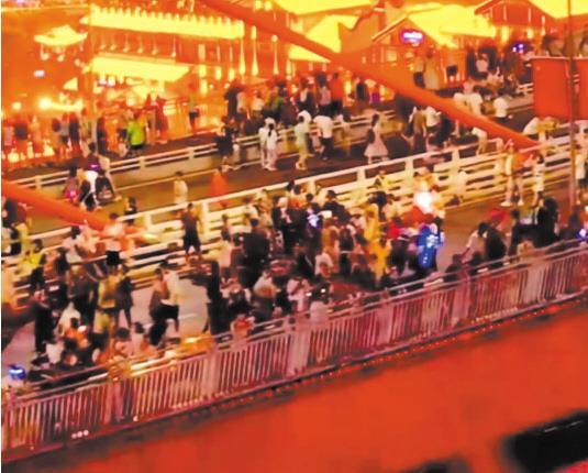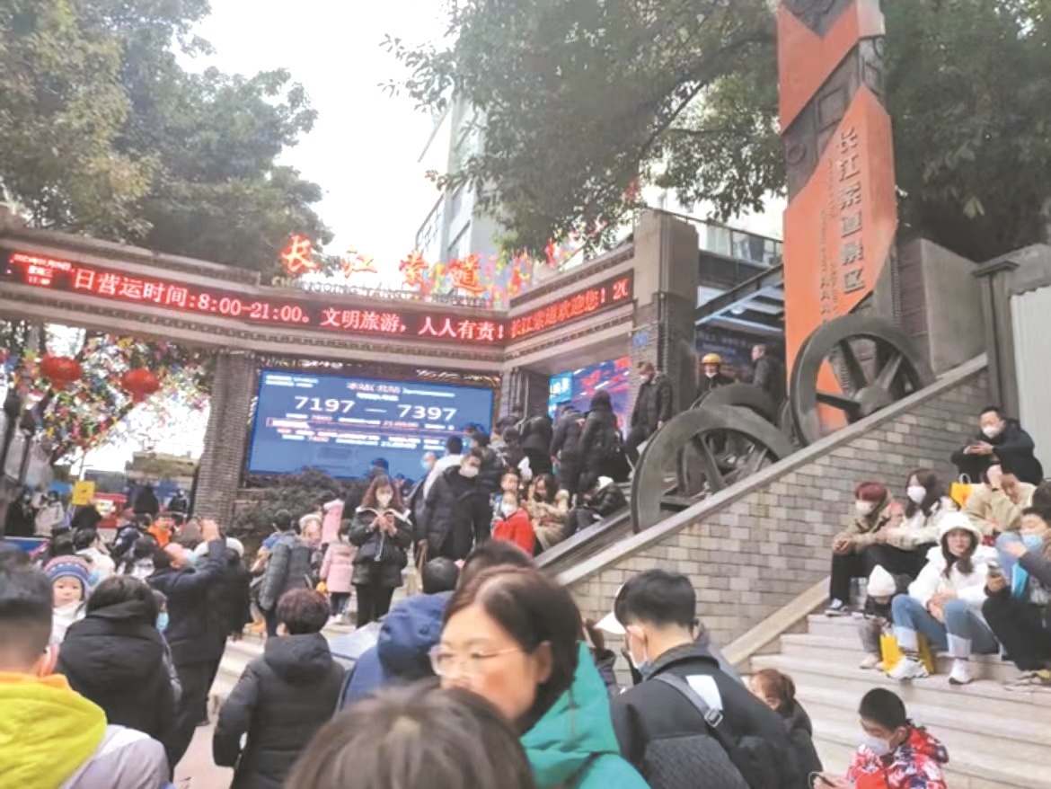 但是下车后从火车站到酒店的路上,她傻了眼。一路上没有想象中的空旷,反倒是车辆排起长龙,走一段堵一段。透过车窗,她看到路边一家大型商场门口人头攒动,不少人对着重庆夜景拍照。