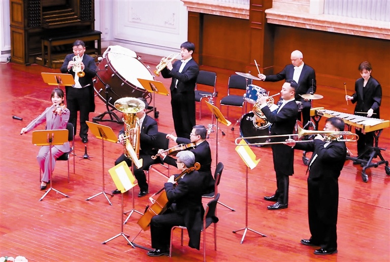 在两支室内乐组的首次合作演出中,演奏家们以弦乐的温柔浪漫,管乐的恢宏大气,共同为乐迷带来多部中外影视金曲。其中,选自《闻香识女人》的《一步之遥》含蓄优雅、委婉激荡,选自《冰雪奇缘》《机器猫》《寻梦环游记》的插曲画面感十足,带乐迷重温一段段美好的电影故事。音乐会在展现中国艺术魅力的《中国四大名著主题音乐联奏》和充满真挚情感的《我爱你中国》后圆满结束,观众将热烈的掌声送给了演奏家们。