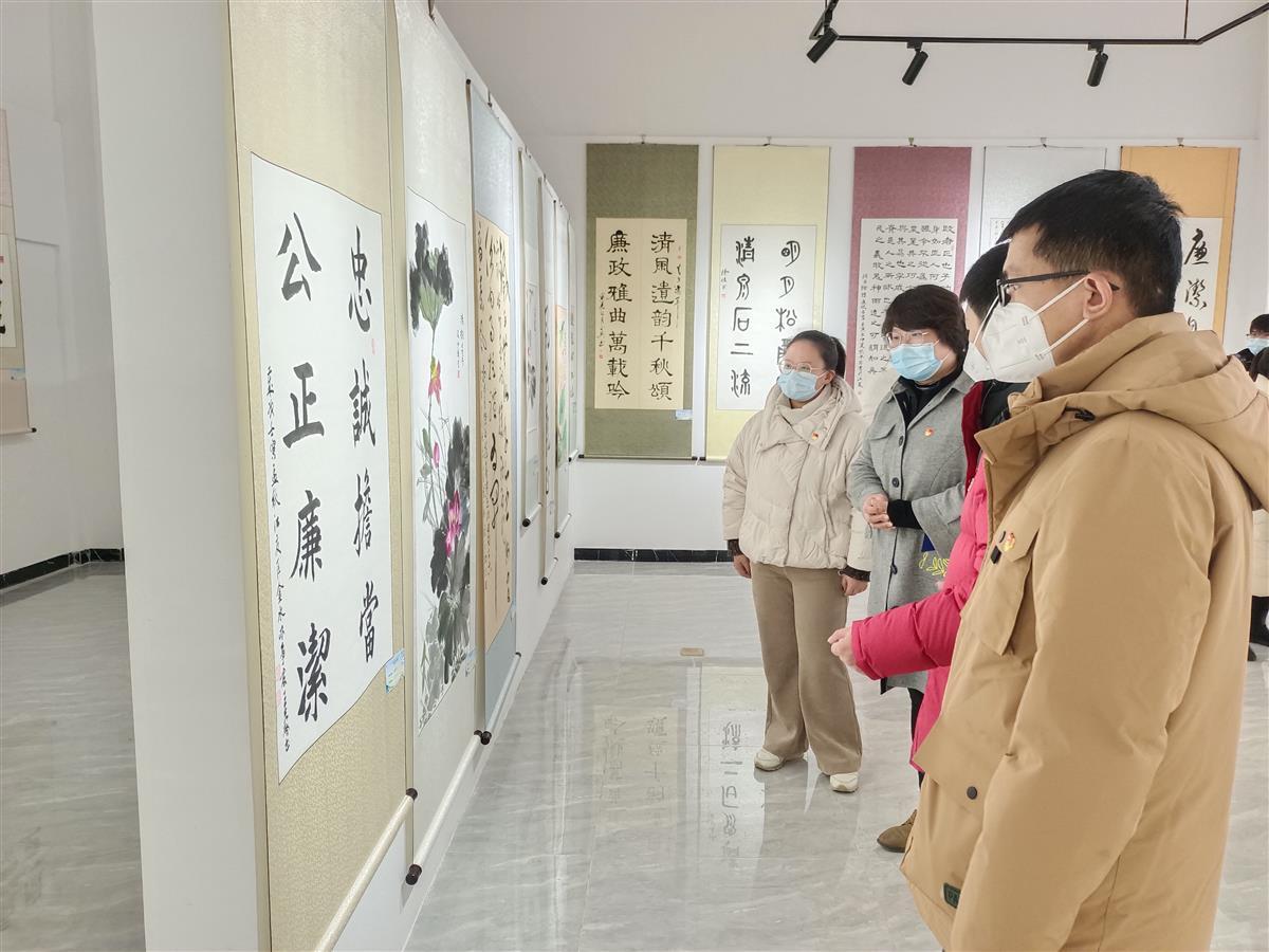 江夏区“清风廉韵”廉政书画摄影展由江夏区纪委监委和江夏区委宣传部主办,是该区“清风廉韵”廉政文艺创作节目大赛的系列活动之一,集中展示了向该区征集的120多幅廉政主题的书画摄影等静态类文艺作品。参展作品内容丰富、风格多样,既有笔力雄浑遒劲的“公生明,廉生威”等古训箴言书法,又有意蕴高逸淡远的莲、梅、兰、竹、松等等君子意象国画,以写廉、画廉的形式倡廉、颂廉,宣传反腐倡廉、廉政为民,颂党恩、抒党情。江夏廉政书画摄影展将持续到2月19日,目前已有来自江夏区30多个单位的1000余名党员群众前来参观。